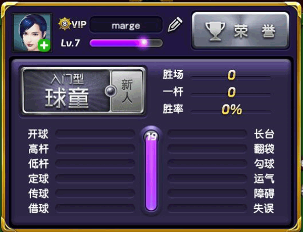 2、 “手残型”,玩家在20场内击球表现获得的称赞(高杆、低杆、长台等)。