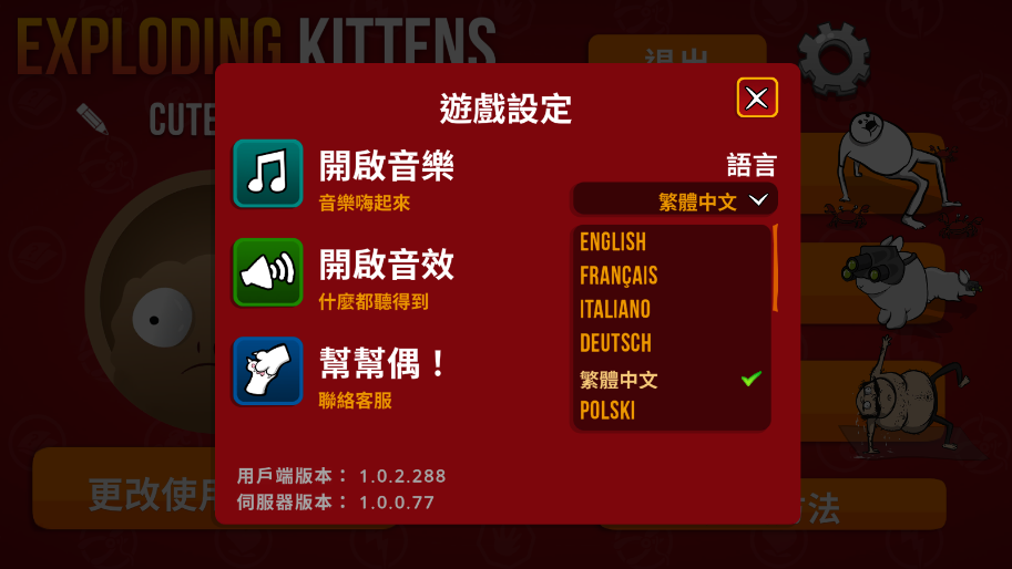 爆炸猫是一款非常好玩的卡牌策略类手游,该游戏的玩法采用类似俄罗斯轮盘的概念,玩家必须轮流从牌堆中抽牌,而牌堆中藏着几张“爆炸猫,如果有玩家抽到了“爆炸猫”玩家将会被淘汰,同时除了“爆炸猫”以外,还有许多不同的牌,比如“拆弹牌”、“退后”和“换牌”等,而拆弹牌能让玩家应用雷射光点、揉肚肚、猫薄荷三明治等等方法出奇制胜,覆灭这些毛茸茸的敌军,帮助玩家逃脱“爆炸猫”的命运。