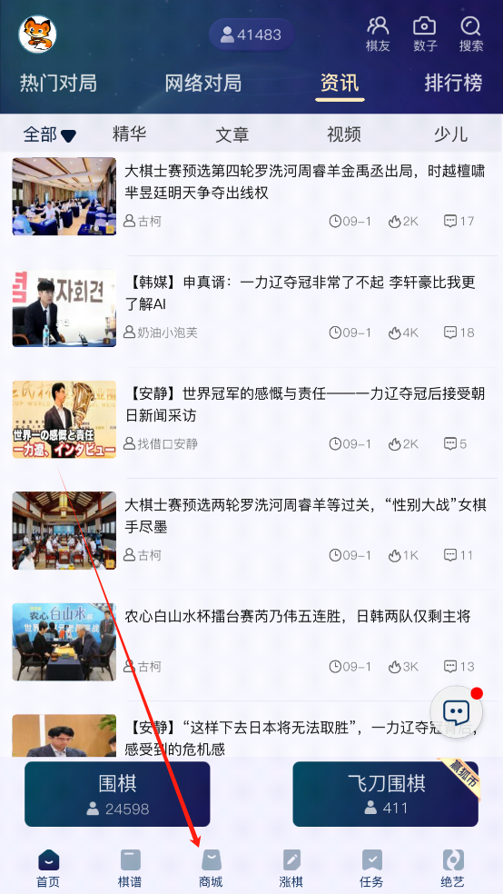 3、游戏中有棋界的在线资讯,让爱棋玩家一手掌握棋界看点;