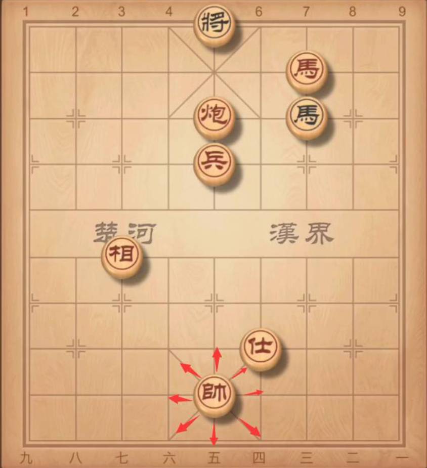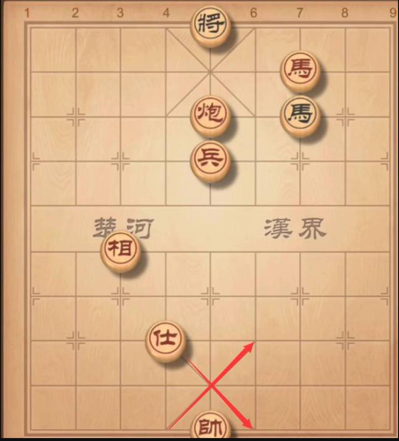 8、士是保护将的最后一道防线,它只能在“宫殿”里行走,且只能走斜线,每次只能走一格。