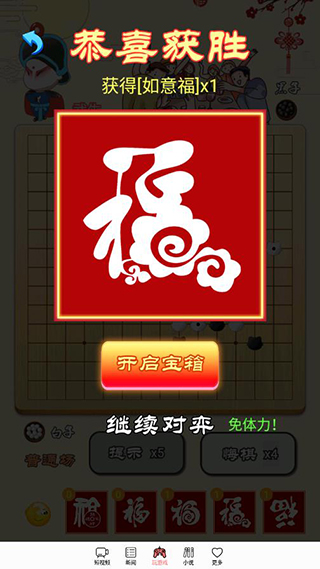 1、迎春五子棋游戏有闯关集福、真人对弈、趣味模式三种玩法,玩法其实都差不多,这里给大家介绍一下闯关集福怎么玩;