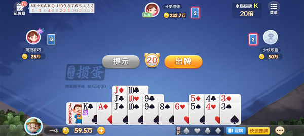 苏北掼蛋是途游旗下一款非常不错的策略棋牌游戏,苏北掼蛋不仅保留了传统的掼蛋玩法,还引入了创新的“不洗牌掼蛋”和“超掼蛋”等特色模式。在这里,你可以与全国各地的真人玩家实时对战,感受公平公正的发牌机制和专业的牌局设计,打牌更过瘾,胜利更畅快。游戏操作简单易上手,适合各类玩家,你可以灵活运用策略,与对手斗智斗勇,赢得胜利的喜悦。