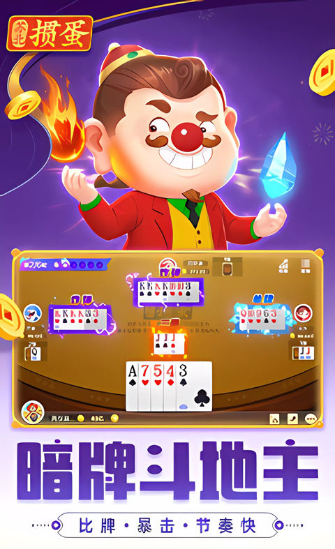 暗牌斗地主:可以比牌的斗地主!四人竞技,刺激比牌,暴击翻倍,炫酷特效,等你赢币赢翻天!