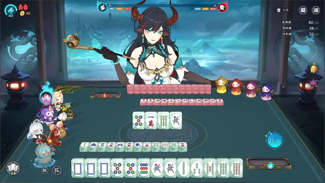4、玩马面这个角色,拿几个对子灵佣打7对就行了,成型后很容易打出高分爽局。