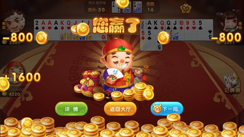 2、专为高智商人群设计的经典休闲卡牌游戏,加入世界智能大脑,赢得烈火双扣涅槃。