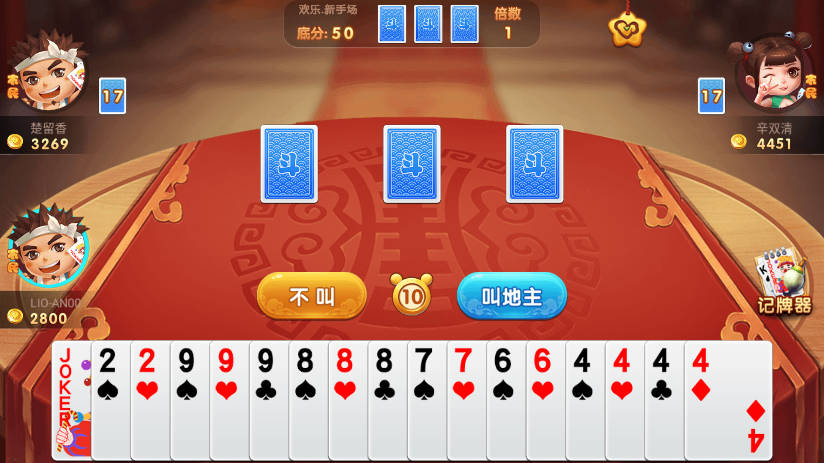抢地主:选择1分、2分或3分进行叫分,分数最高者成为地主;若不想成为地主,可点击“不叫”。