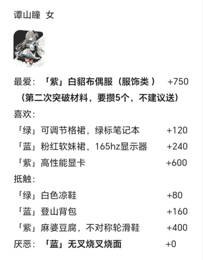 □厌恶的会拒收,不消耗但能解锁角色语音