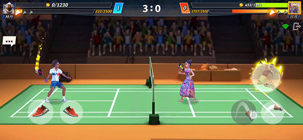 4、常规位移+杀球暴扣,上百种球路,配合经典羽毛球技巧,主宰比赛,秀出你的操作,让你成为球场MVP!