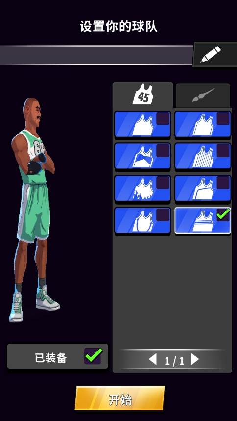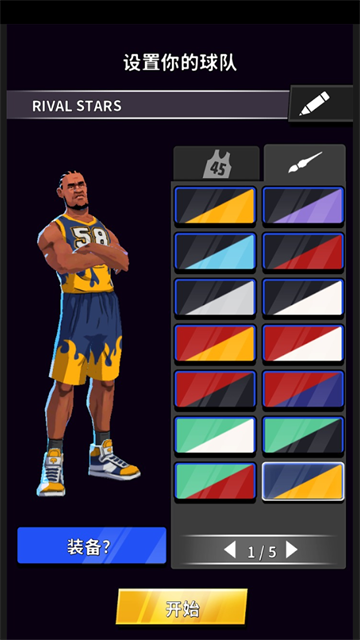 1、首先,玩家在本站下载并安装好游戏之后,打开进入,取一个好听的名字,并依据自身喜好选择球衣以及颜色,点击旁边的【装备】;