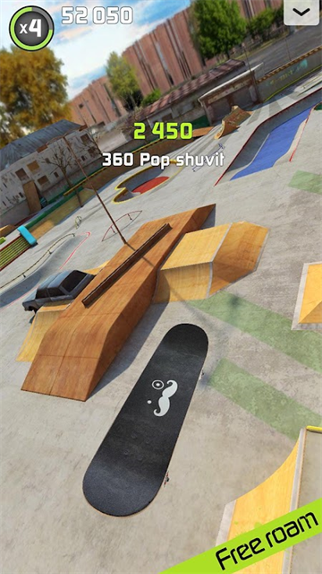 4、比较遗憾的一点是本作并不能多人在线游戏,否则同屏竞技高难度动作、竞速等等也许会让这款作品更加刺激。不过遗憾归遗憾,这款作品简单的操作方式带来的却是十足难度的乐趣。游戏真实的画面加上特色的操作方式,让这款作品显得特别而真实。虽然整款游戏只是在不停的玩滑板,但是玩着玩着,你也许就会发现其实手指上的滑板也并不是那么简单。