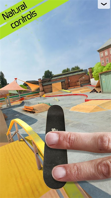 1、游戏的模式并不多,主要是教学、竞赛以及表演几个模式。虽然游戏中玩家只需要通过两根手指控制滑板,但是真正操作起来的难度非常高。本作最基础的操作是将两根手指前后放置到滑板上让滑板向前移动,放掉其中一根手指则是让滑板向一方倾斜来停下。游戏在这个最基本的操作基础上还加入了更加复杂的转弯、各种特技动作以及连续动作,而这一切都是基于玩家的两根手指。