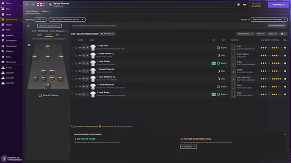 我们在国家队人才库主菜单中增加了潜在能力、战术适应性、职员建议和基于职员反馈的交互选项。职员建议是根据战术体系给出的,他们可能会根据您不同的战术提供不同的选择,您可以在屏幕右上角的下拉菜单中更改战术。