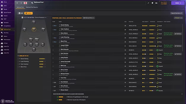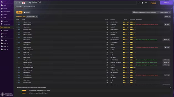 我们对国家队人才库的界面进行了一系列更新,让各位经理更清楚有哪些球员可供国家队征召。