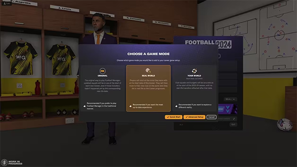 在《足球经理2024》中,生涯开始时,有三个模式可供您选择,分别是“经典模式”、“现实世界”与“您的世界”。