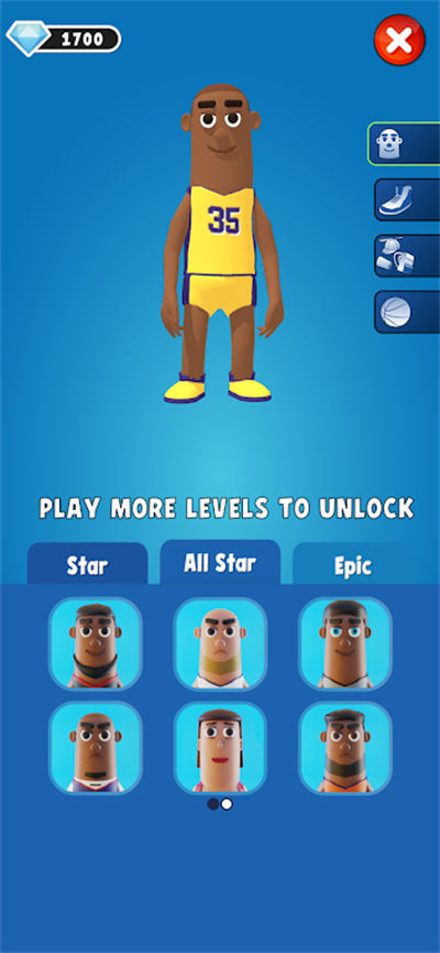 3、有非常多不同的人物角色,等待着玩家自由的进行选择,不同的人物角色有着不同的人物属性,体验不一样的投篮乐趣。