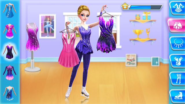 在手机上跳起冰之舞吧,喊上伙伴一起跳双人芭蕾舞吧,这一切玩法都可以在冰之舞最新版游戏中实现!最炫酷好玩的换装舞蹈类手游非它莫属啦,当然这是我心目中的。在这款游戏中,玩家可以将我们的舞者打扮得漂漂亮亮的,给她选取各种装扮、服饰、妆容,等她上场比赛还能做出各种动作,当然是越流畅越能获得高分啦,说不定还能斩获得各种荣誉,成为世界冠军呢。还是说说游戏中庞大的化妆间吧,里面有着各种工具,不管是服装还是配饰,都由你来搭配,一切都是为了让我们的舞者妹妹更轻盈,要像精灵一般在冰面上翩翩起舞,展示最优雅的身姿才好。完成之后,玩家还可以保存观看自己的舞蹈动作的视频,把你的夺冠瞬间分享给大家吧~