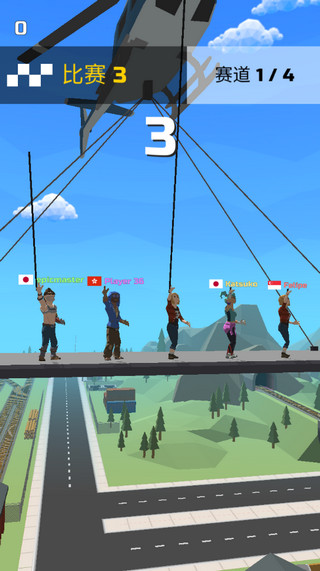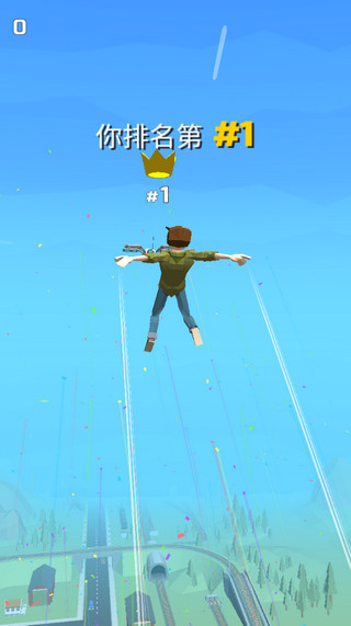 像蜘蛛侠那样在城市中摆荡飞行吧!这款马路飞人游戏就是这样玩儿的!玩家将在游戏中与来自世界各地的人们一起竞争第一名!每局比赛将进行四次飞行,最后一名选手将淘汰出局!只有在四次飞行比拼中保持不落后,并且争夺最快速度到达终点才能获得比赛冠军!长按屏幕发射绳索,然后开始摆荡飞行吧!但切记不要飞得太高而错过空中的加速圈!注意在合适的时机松开绳索,让角色滑翔或者下落,穿过加速圈才能飞得更快,为你抢得先机~而且这些加速圈是一次性的,有人穿过后便会消失,利用这一点让对手无圈可穿,他们的速度将大大落后,再也追不上你!