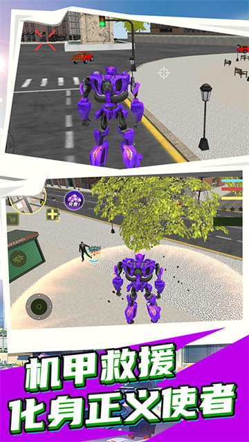 城市英雄机甲救援是广州秦时网络科技有限公司开发的一款集合了跑酷、竞技、格斗等多种元素的休闲趣味手机游戏,由于这个城市被神秘人占领,玩家将背负起拯救城市居民安危的责任,化身成为一个正义使者汽车机器人,玩家可以变换形态,在需要速度追捕敌人时,就可以迅速变身成为一辆赛车,开启神秘的跑酷旅程。在追捕到敌人之后可以恢复战斗机器人的原貌,购买武器装备来对战神秘人,超高的自由度以及操控感一定能给你带来全新的体验,炫酷的格斗场面、精彩的特效相信你一定会爱上的,并且城市英雄机甲救援操作不难,很容易就可以获得良好的游戏体验,非常适合朋友们用来打发时间,刺激的节奏感和打击特效相信你一定会爱不释手的,赶快来下载试玩吧。