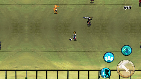 火影忍者足球是由玩家自制的一款同人足球游戏,采用像素风格制作,在这里提供了超多超多火影角色可以选择,如鸣人、佐助、樱、波风水门等,每一个角色都有专属的攻击方式和特殊技能,玩家可以根据自己的喜好自由选择。在游戏玩法上,火影忍者足球手机版采用了横屏操作方式,左边控制人物移动,右边则为攻击键和三个技能键,玩家需操纵火影角色攻击敌人,最后把球踢进对方球门即可获胜。