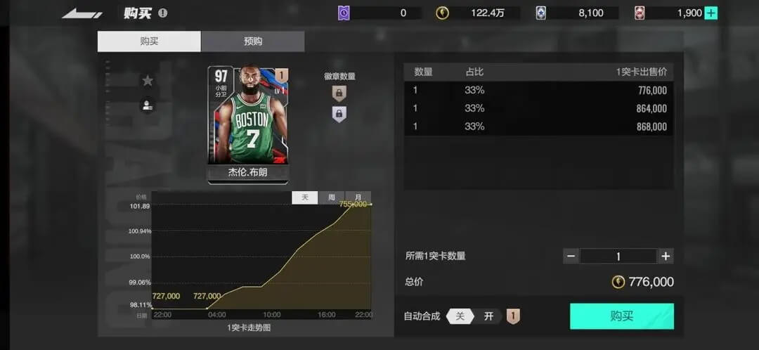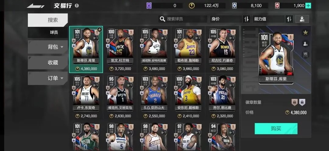 如果前期幸运抽到了库里、杜兰特、安特托昆博、维克托,那么一定要保留哦,交易市场后面的价格会一路飙升。