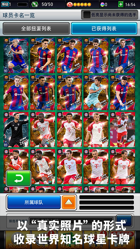 1、以真实球员照片的形式 收集世界知名球星卡牌!