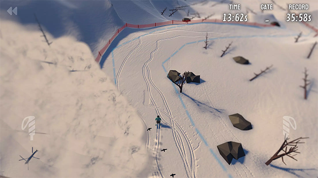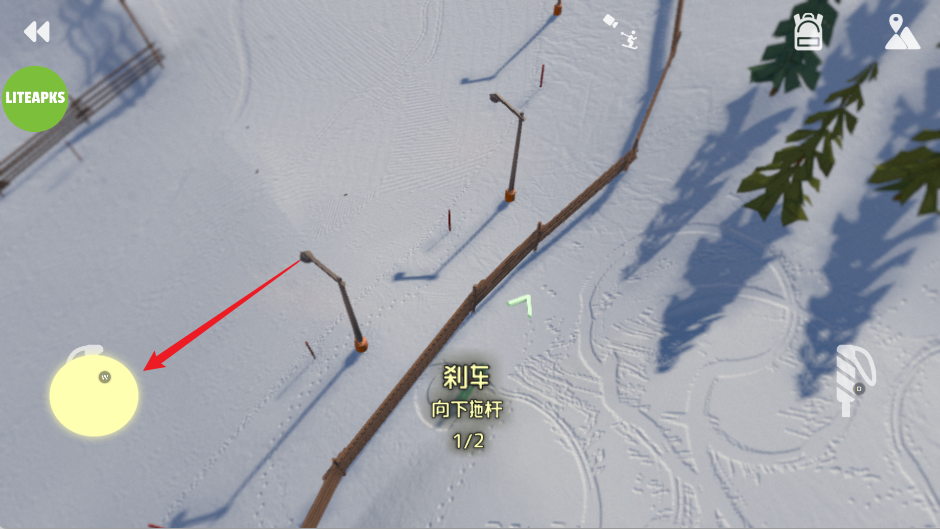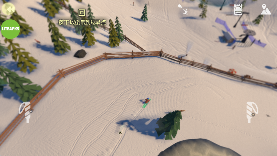 6、如果想换个角度体验比赛,只要点击右上角的小人图标,即可切换不同视角,带来更沉浸的滑雪体验。
