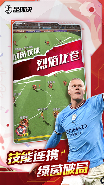 1、足球决专属流派全新升级。自由搭配战术与技能,策略对决全面升级;