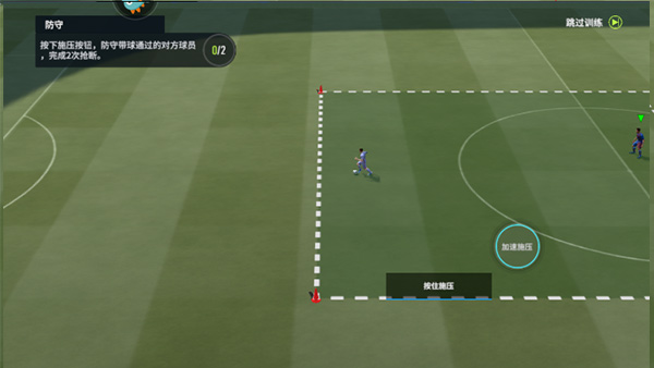 按下加速施压按钮,可以防守带球通过的对方球员。