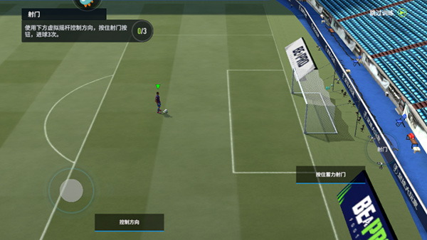 左边虚拟摇杆控制方向,右边射门按钮控制射门力度。