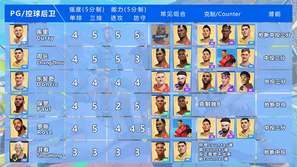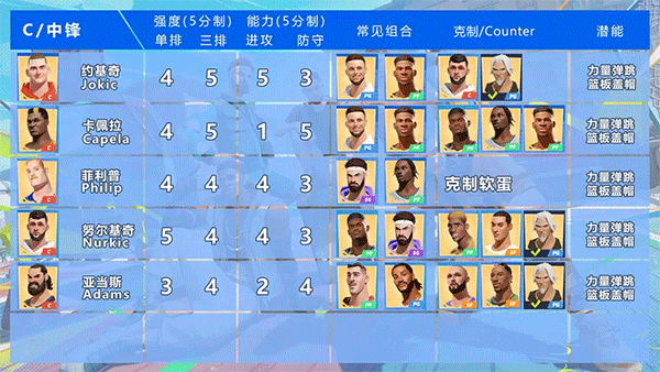 (1)球队需要综合能力全面在王朝模式中参赛的球员由各位巨星自主选择,登场球员的能力越全面,获得胜利的可能性越大。如前期争夺球权或者比赛中争抢篮板,通常需要中锋或者大前锋在场;想要球队有更多得分手段,小前、分卫和控卫均可上场。