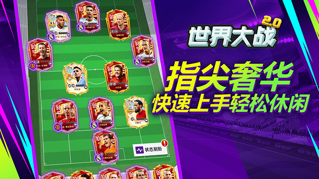 世界大战手游是一款由FIFPro官方正版授权的H5足球游戏,融合了球星收藏、球员养成和布阵对战等元素,打造了一款独一无二的足球卡牌游戏。在游戏中,你将有机会与世界足坛最耀眼的明星并肩作战,续写他们的传奇故事,你可以与C罗这样的顶级球星一起征战球场,感受他们的无与伦比的技巧和天赋,他们将是你球队的核心,为你带来无尽的荣耀和胜利。除了与罗C并肩作战,你还可以带领哈兰德、福登等年轻天才球员创造新的篇章,根据你的战术意图来调整球队的布阵,从而取得最终的胜利。